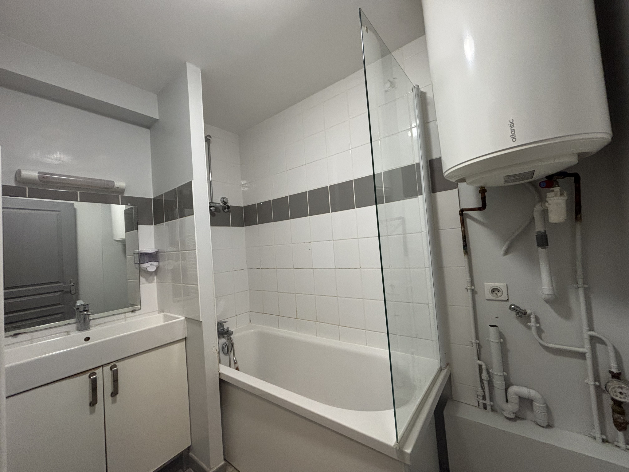 Dans un environnement calme donnant sur une cour commune, un appartement 2 pièces comprenant un séjour avec cuisine aménagée et équipée (plaque de cuisson, hotte et four), un espace nuit, un dressing, une salle de bains, un wc.