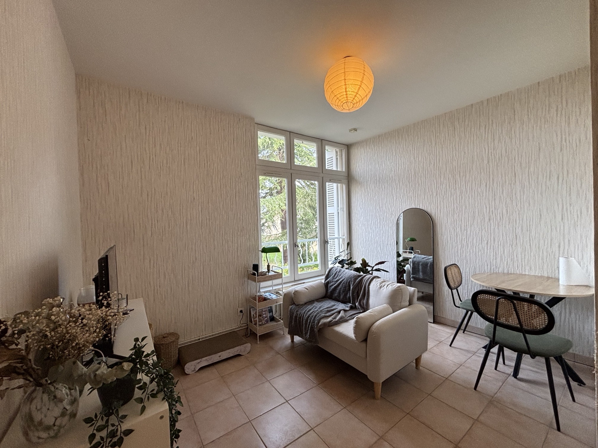 Dans un environnement calme, un studio de 27m2 comprenant une entrée avec placard, un grand séjour donnant sur un balcon, une kitchenette séparée, une salle d'eau avec wc.