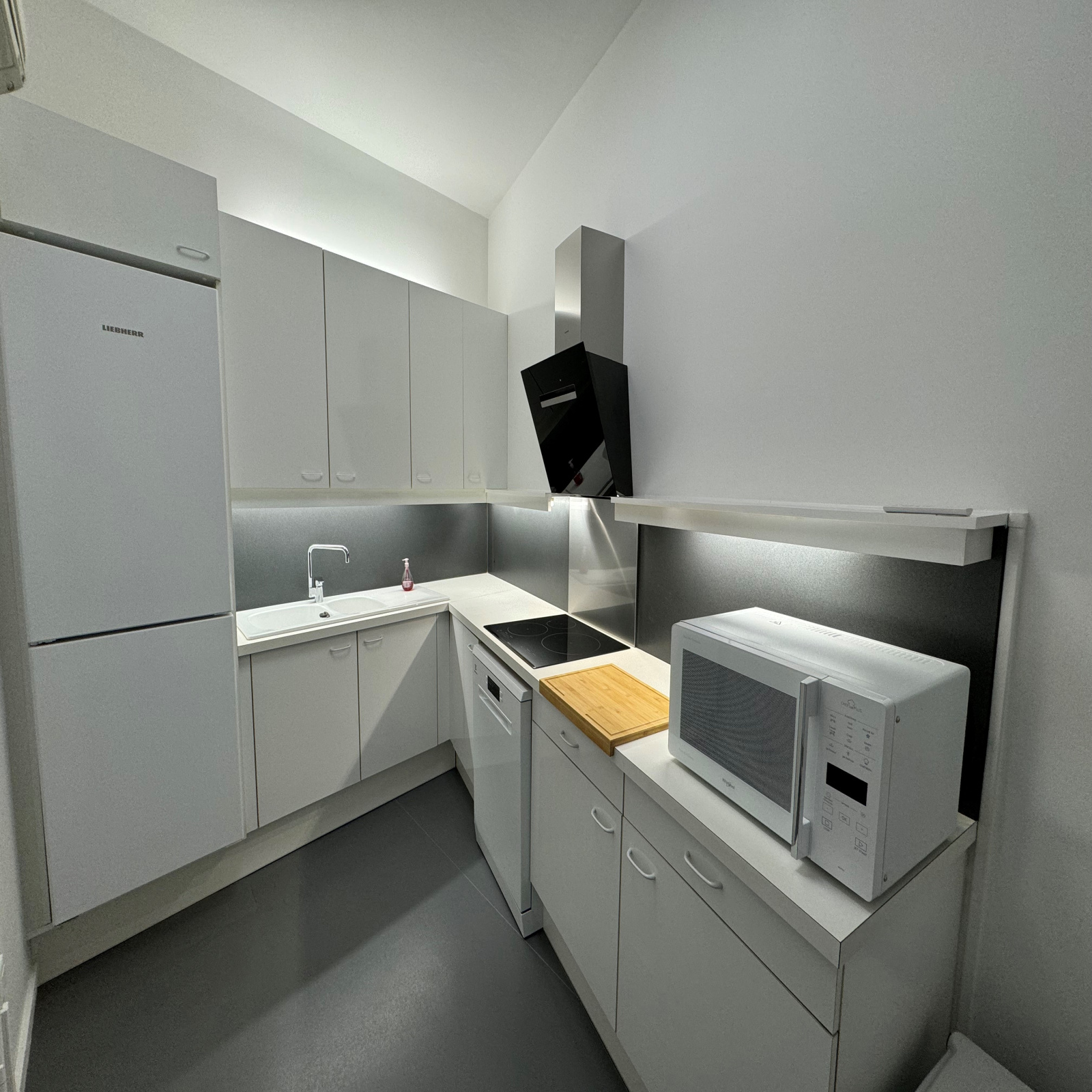 Très bel appartement entièrement rénové de Type 2bis de 60 m² situé dans une résidence sécurisée avec ascenseur, en plein cœur du centre ville de Poitiers, dans le Quartier Magenta comprenant :