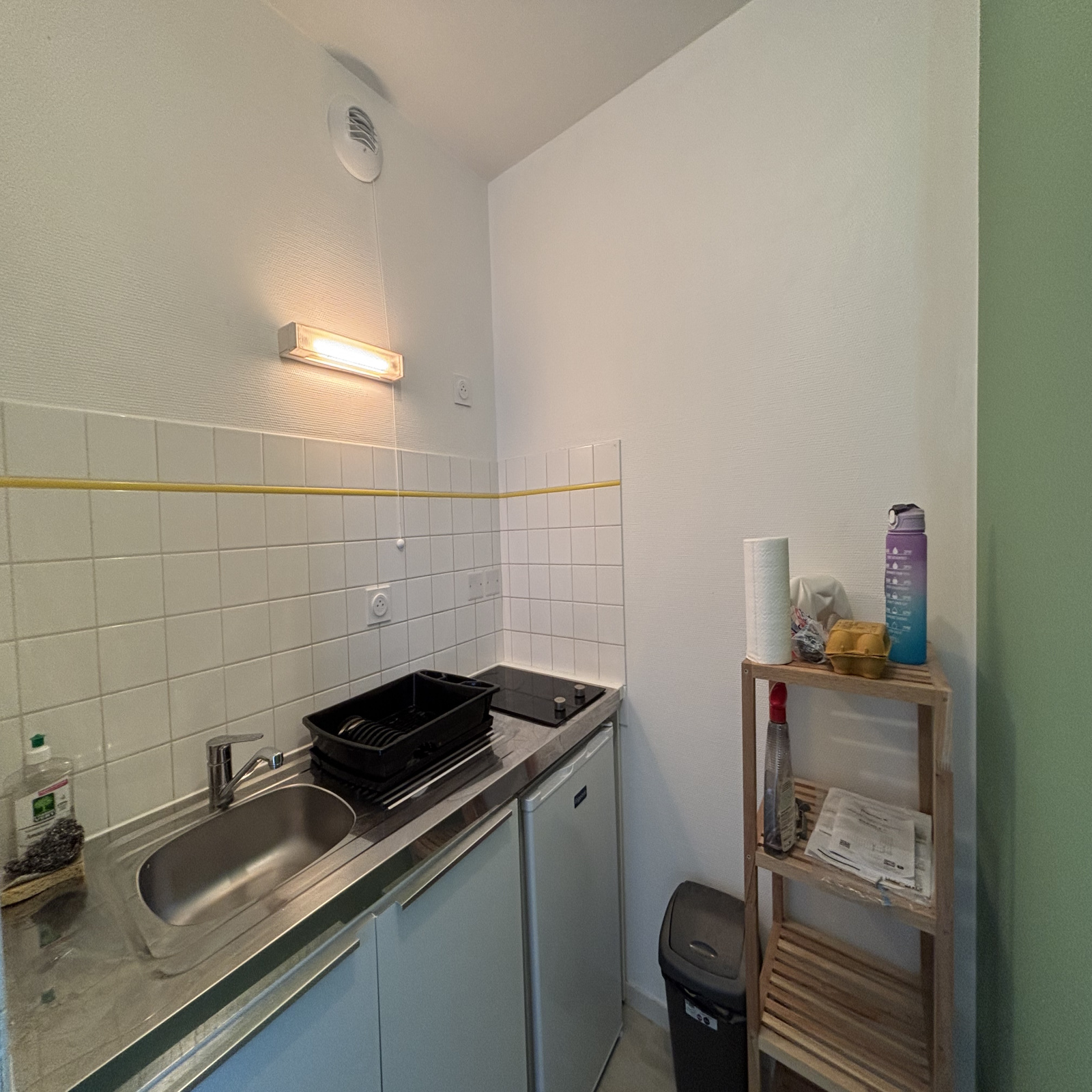Dans un environnement calme, entre le centre-ville et le campus, un studio meublé de 21.20m2 comprenant une pièce de vie avec placard, une kitchenette équipée, une salle d'eau avec wc.