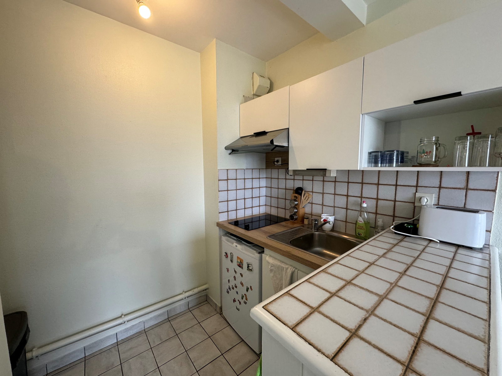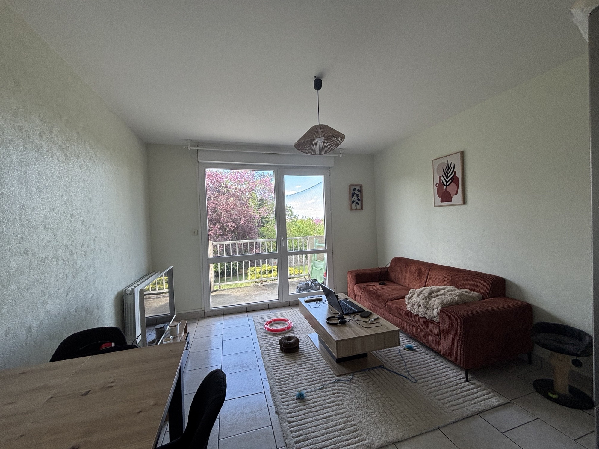 Dans un environnement calme, un appartement 2 pièces de 38m2 au rez de chaussée surélevé comprenant une entrée avec placard, un séjour avec balcon, une kitchenette, une chambre, une salle d'eau, un wc.