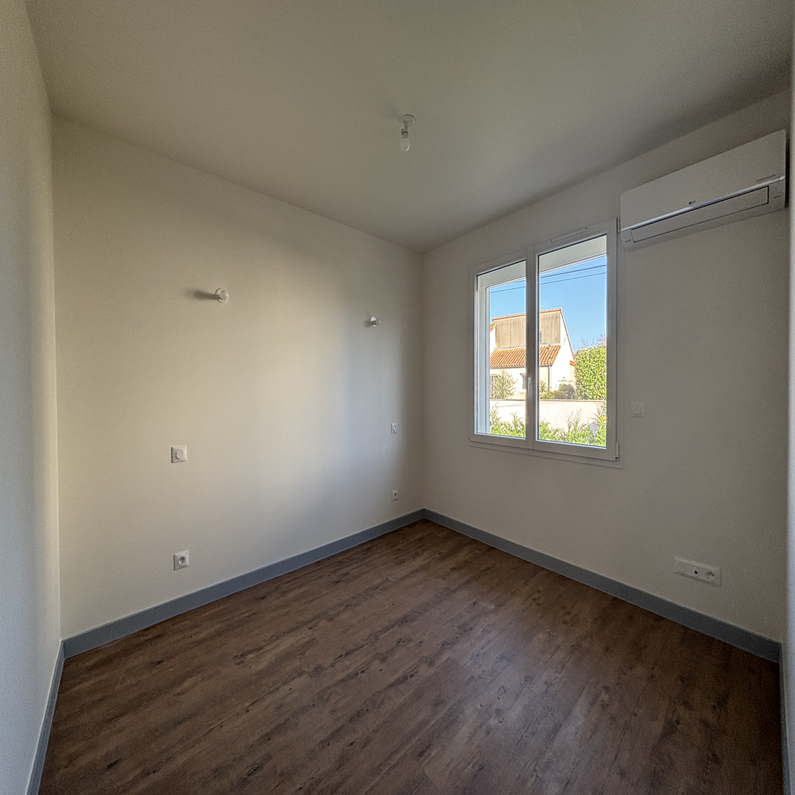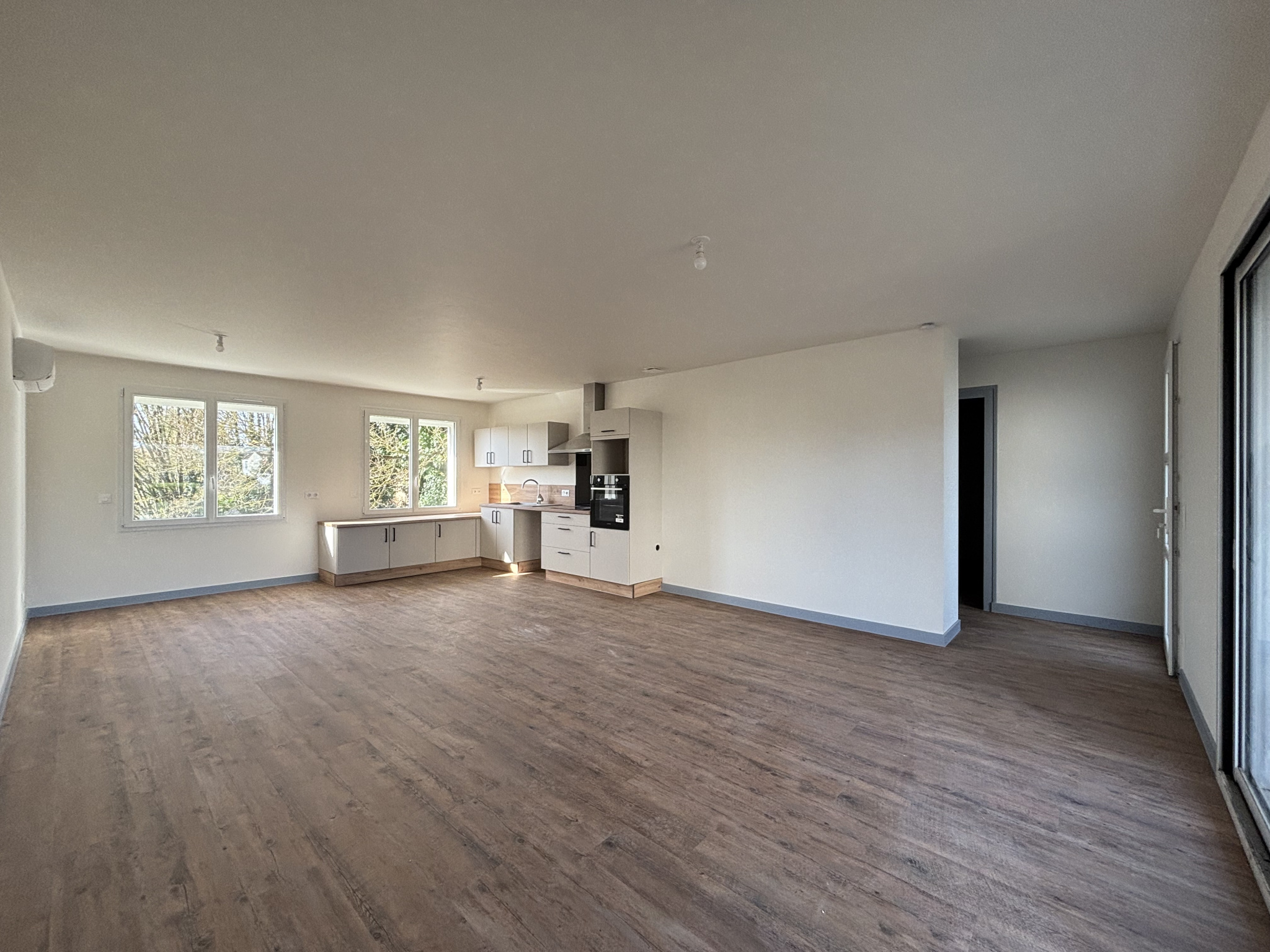 Maison type 4 de 110m2 sur Poitiers entièrement rénovée comprenant une entrée, une pièce de vie lumineuse donnant sur un balcon avec cuisine aménagée et équipée (plaque de cuisson, hotte et four), deux chambres, une salle d'eau, un wc.