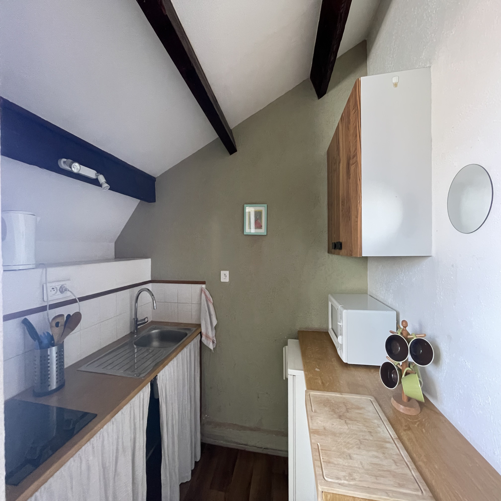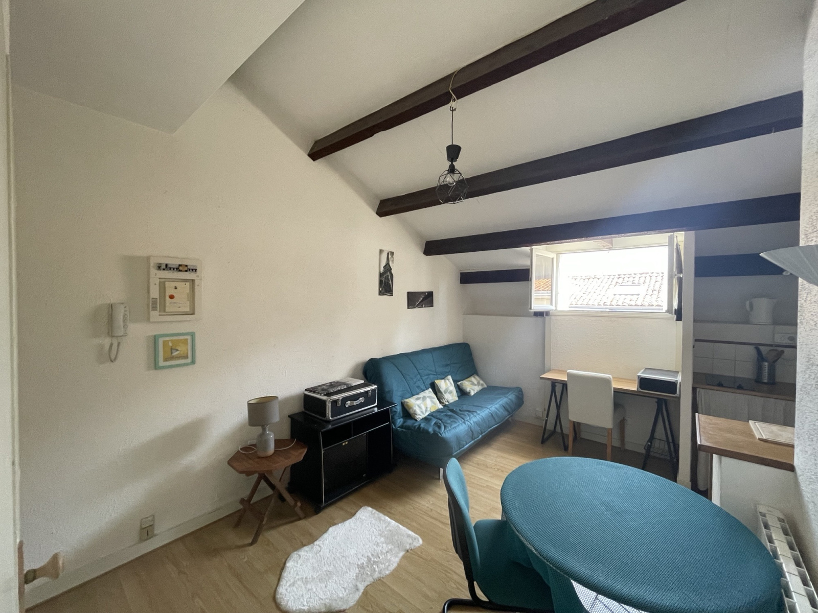 Dans une résidence sécurisée avec ascenseur, un studio meublé au 3ème et dernier étage comprenant une pièce principale, un coin kitchenette, une salle d'eau avec wc.