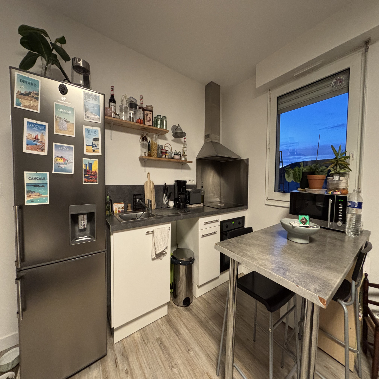 une entrée avec placard, une pièce de vie avec cuisine ouverte aménagée et équipée (plaque de cuisson, four et hotte) donnant sur un balcon, un chambre avec un grand placard, une salle d'eau, un wc.