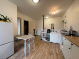 Un séjour avec cuisine, un salon, une salle d'eau avec wc.