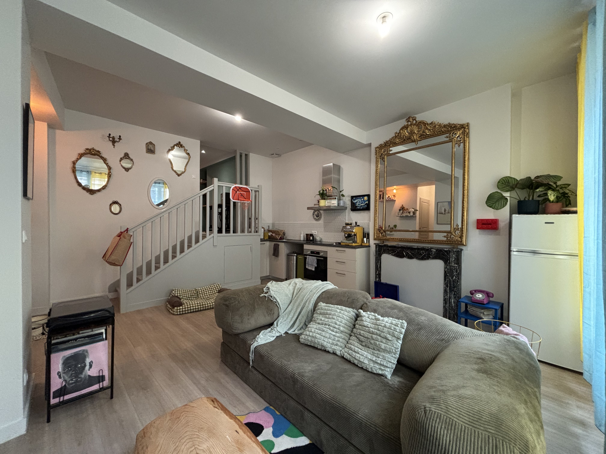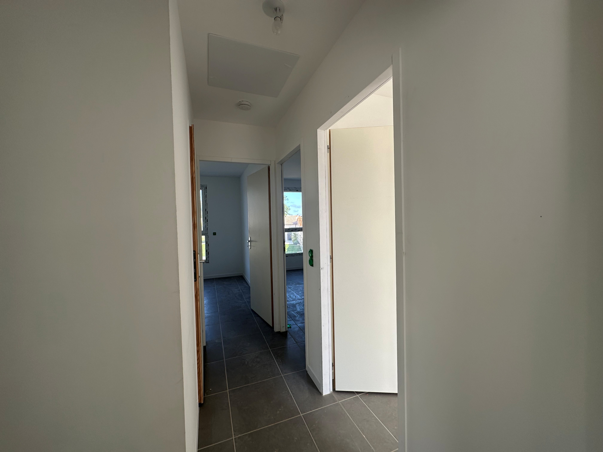une entrée, un séjour, une cuisine ouverte aménagée équipée (plaque de cuisson, hotte, four), 3 chambres avec placards, une salle de d'eau et un wc.