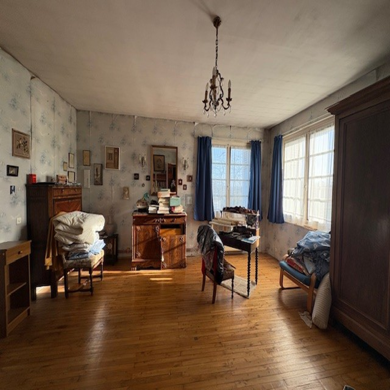 Ce bien de type 5 de 150 m² se compose d'une entrée spacieuse, un dégagement desservant salon avec cheminée, salle à manger, cuisine et wc. A l'étage vous trouverez un très grande chambre de 26 m², une salle de bains avec WC et deux autres chambres. Jardin entièrement et arboré de plus de 350 m².