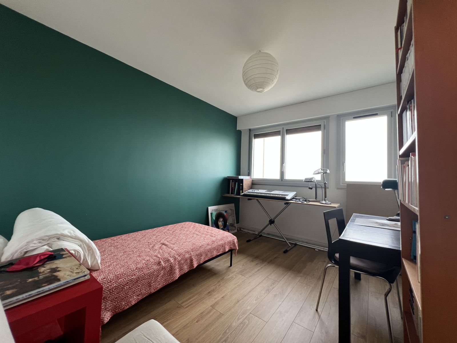 Appartement T5 d'environ 105m² comprenant une grande entrée avec dressing, un séjour double (salon+salle à manger), une cuisine aménagée équipée, un couloir avec placard, 3 chambres, wc, salle d'eau et salle de bain.
