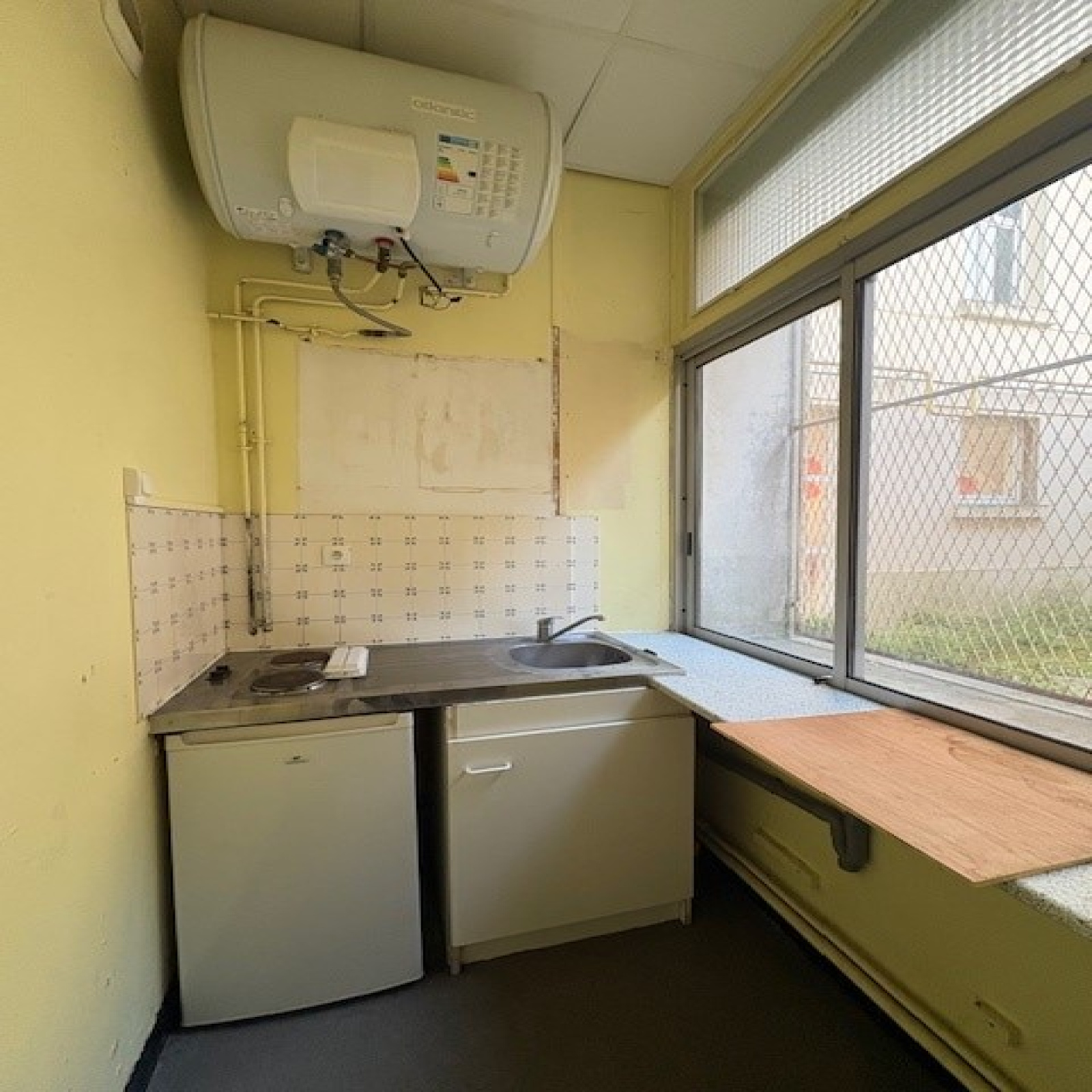 Il se compose d'une entrée/séjour avec mezzanine, une cuisine séparée et une salle d'eau avec wc.