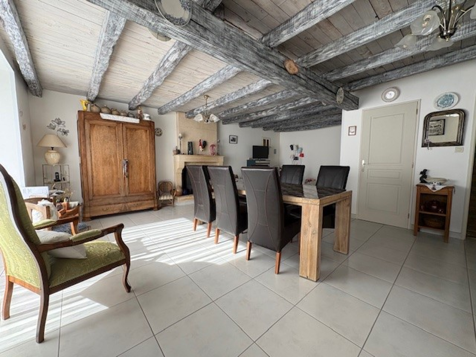 Elle se compose en rez-de-chaussée, d'une cuisine aménagée et équipée avec un coin cellier, un WC et un joli séjour de 35 m² avec un poêle à bois.
