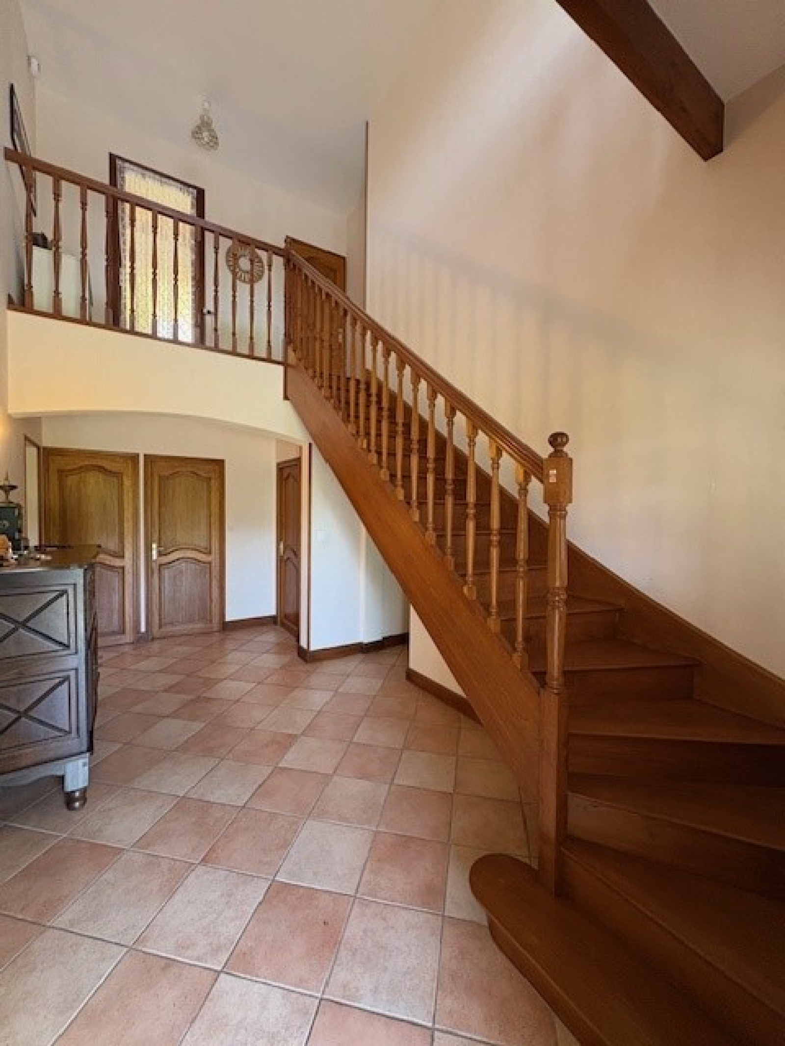 A l'étage, vous trouverez un palier/mezzanine, qui vous conduira à une salle d'eau avec WC et 3 chambres.