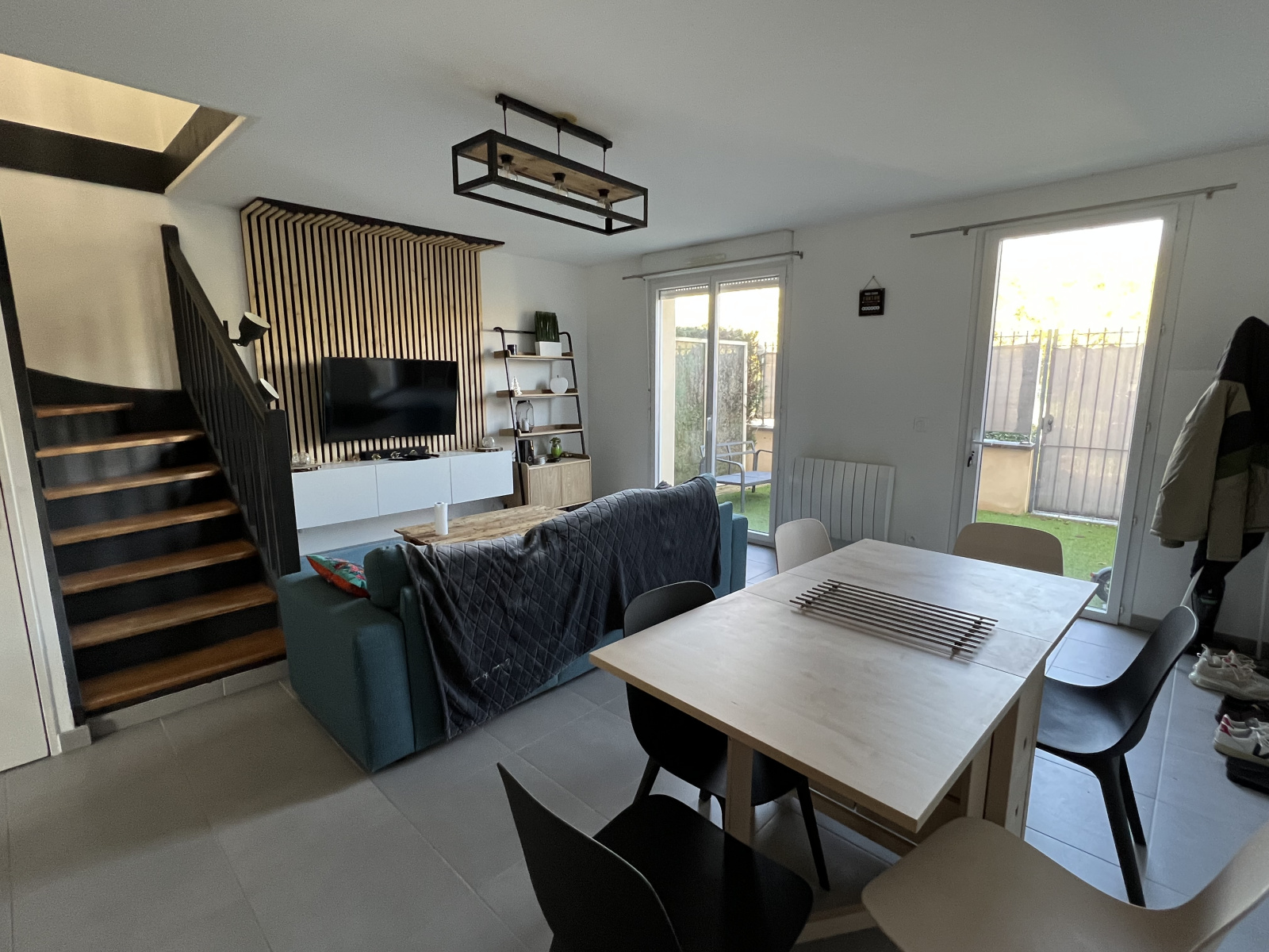 Elle se compose en rez-de-chaussée d'une entrée, un wc, une cuisine entièrement aménagée et équipée ouverte sur salon séjour donnant accès à une terrasse.