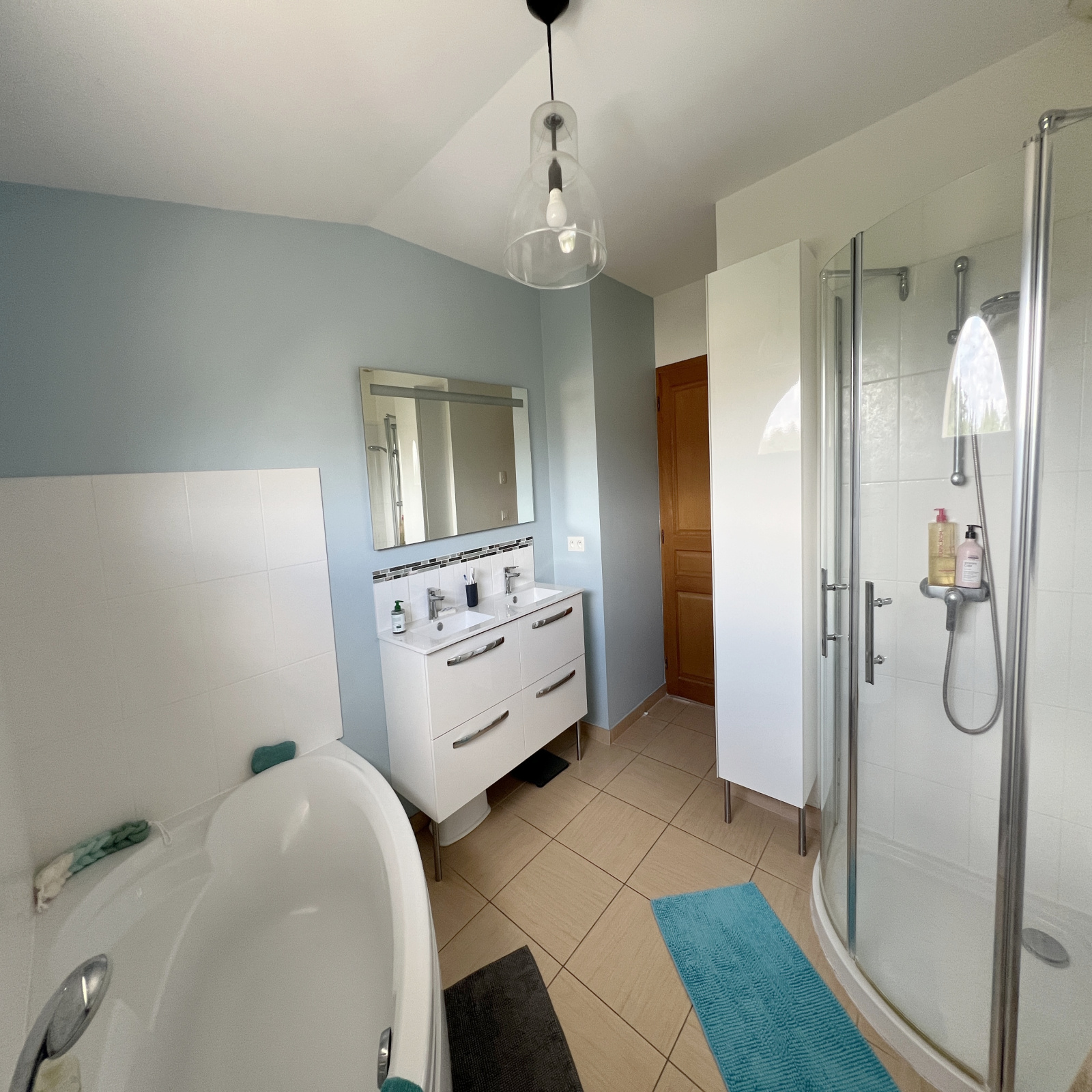 Maison parfaitement entretenue et conçue avec des matériaux de qualité. Chauffage électrique au sol, cheminée et climatisation réversible. Adoucisseur. Taxe foncière 1970€.