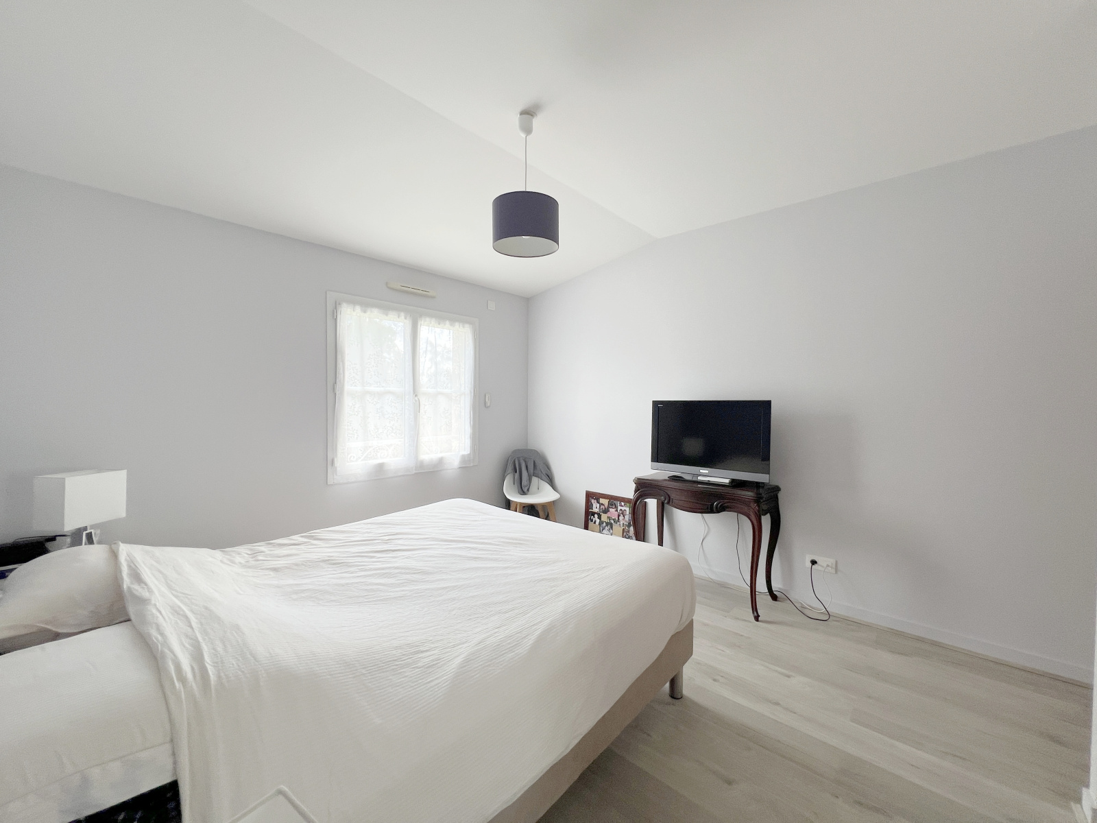 Elle est composée au rez-de-chaussée d’une entrée avec placard, un vaste séjour lumineux avec cheminée et climatisation donnant sur l'extérieur, une cuisine aménagée et équipée en accès direct avec la terrasse, un cellier/buanderie, un wc et deux chambres dont une avec salle d'eau.