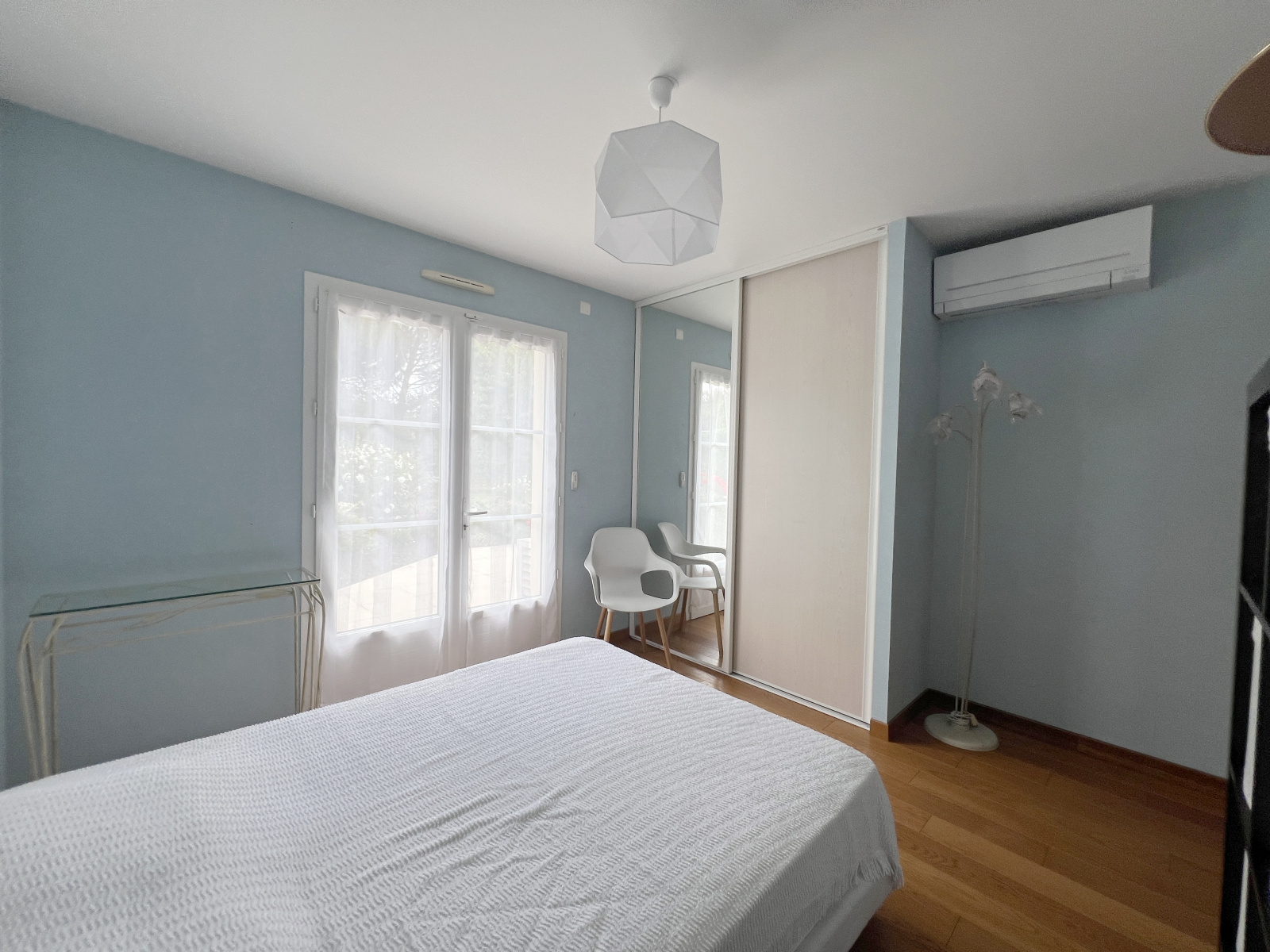 À l’étage, un palier desservant 3 chambres dont deux climatisées, une salle de bain avec baignoire et douche, WC séparé.
