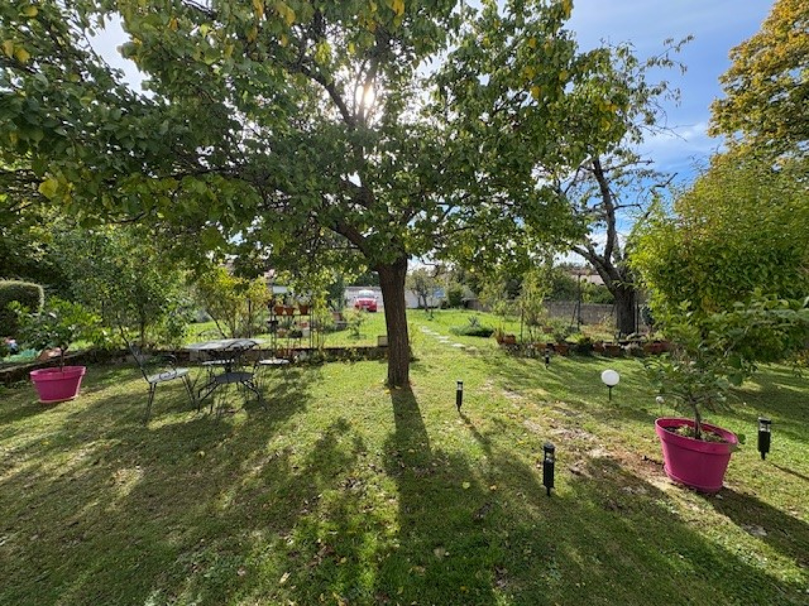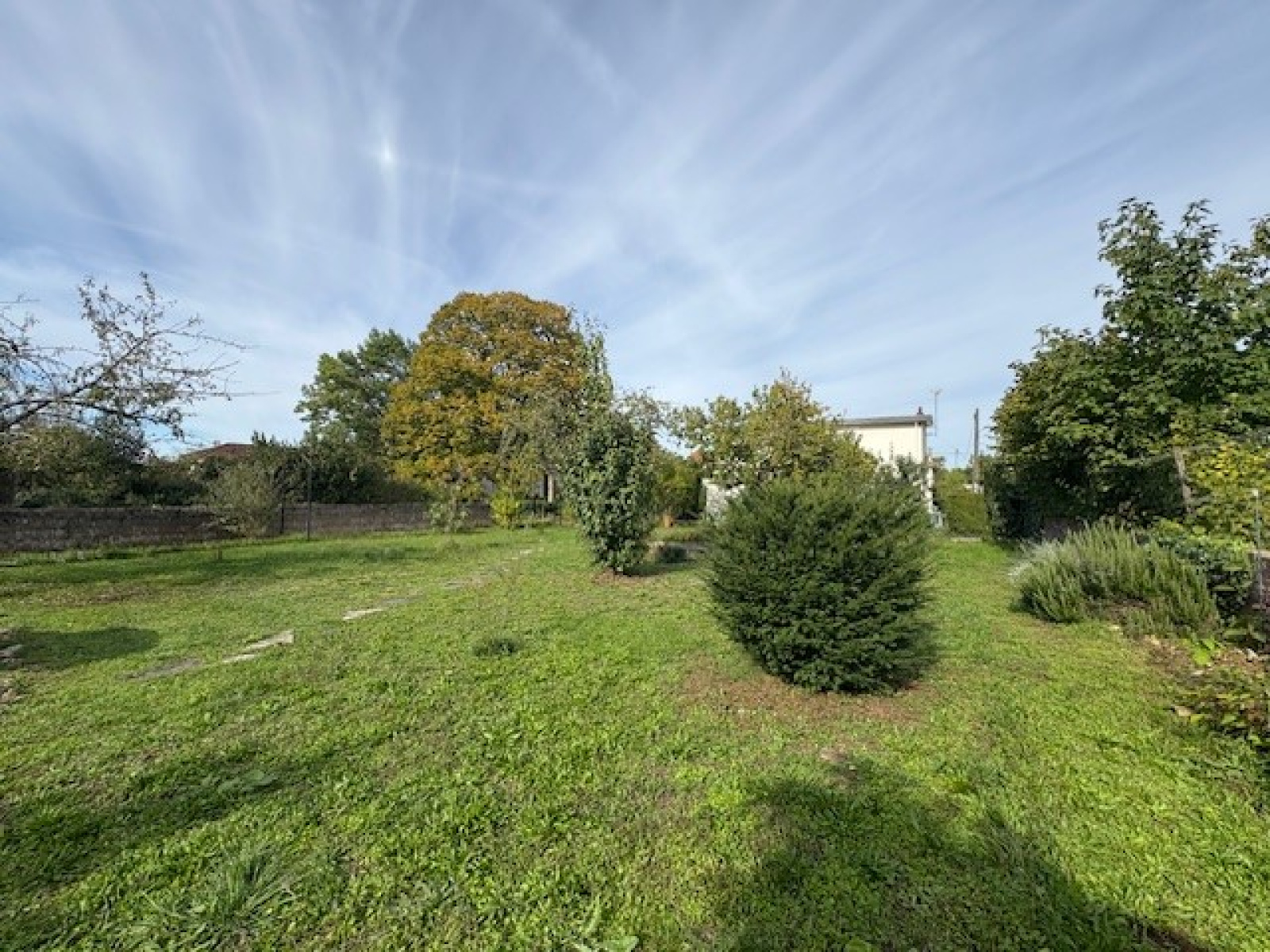 Aspect extérieur, un jardin clos et arboré de 867 m² est potentiellement constructible sur environ 400 m².