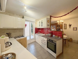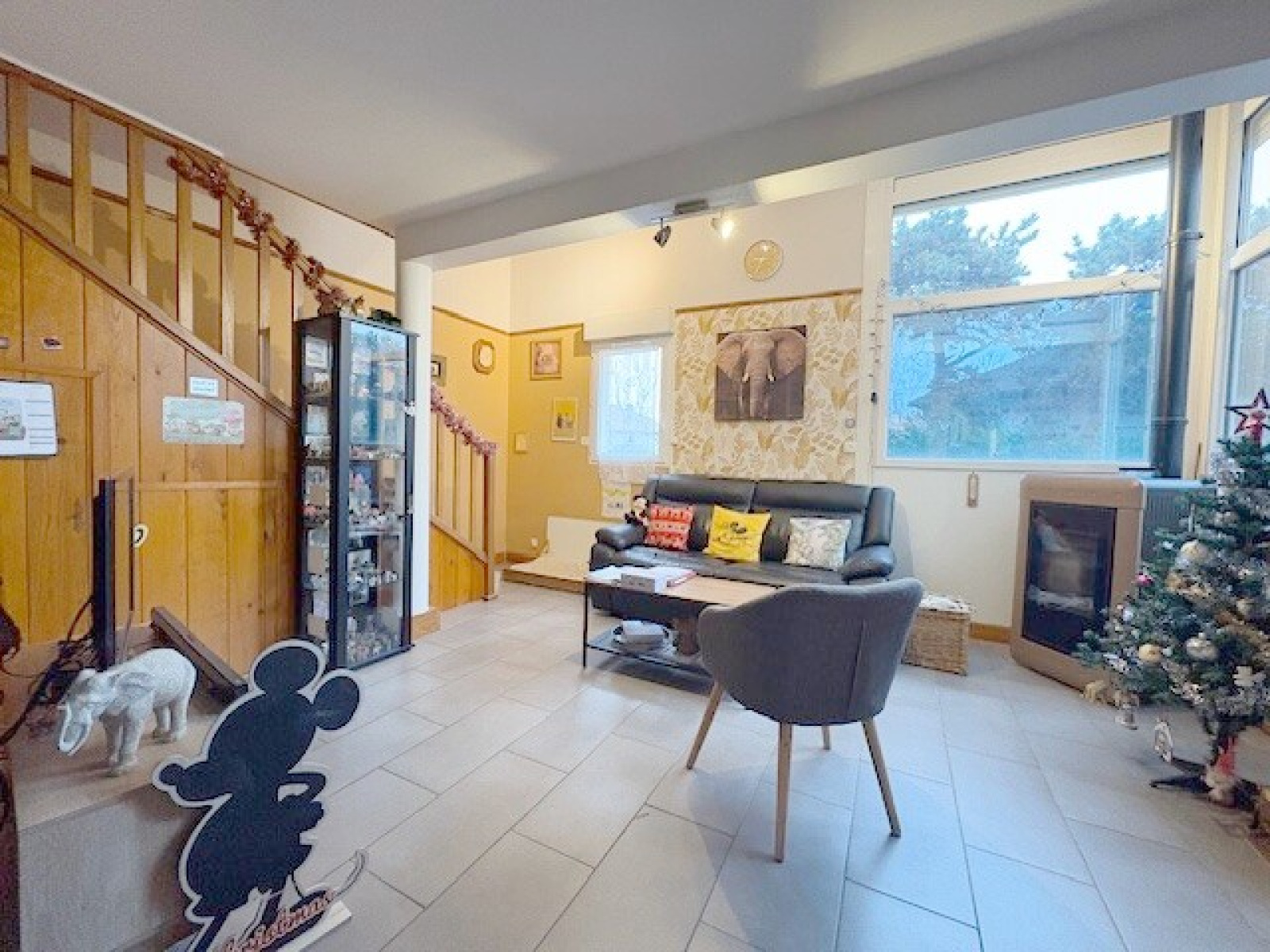 Elle se compose en rez-de-chaussée, d'une entrée, cellier, WC, une cuisine aménagée ouverte sur la salle à manger donnant sur terrasse privative de 15 m² sans vis-à-vis et un salon avec poêle à granulés.